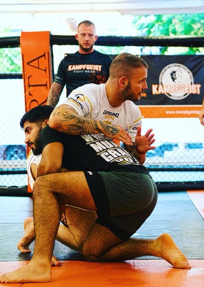 MMA, BJJ, No Gi Grappling, Sambo, Judo und Ringen einiges an Erfahrung mitgenommen.