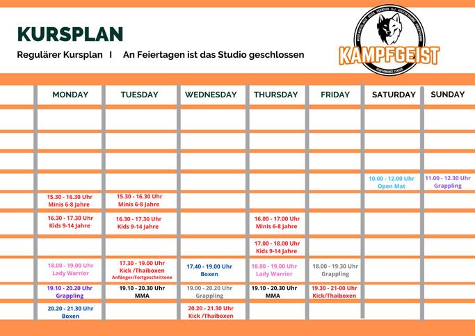Bitte beachtet, dass es kurzfristige Änderungen (Krankheit, Wettkämpfe...) geben kann.